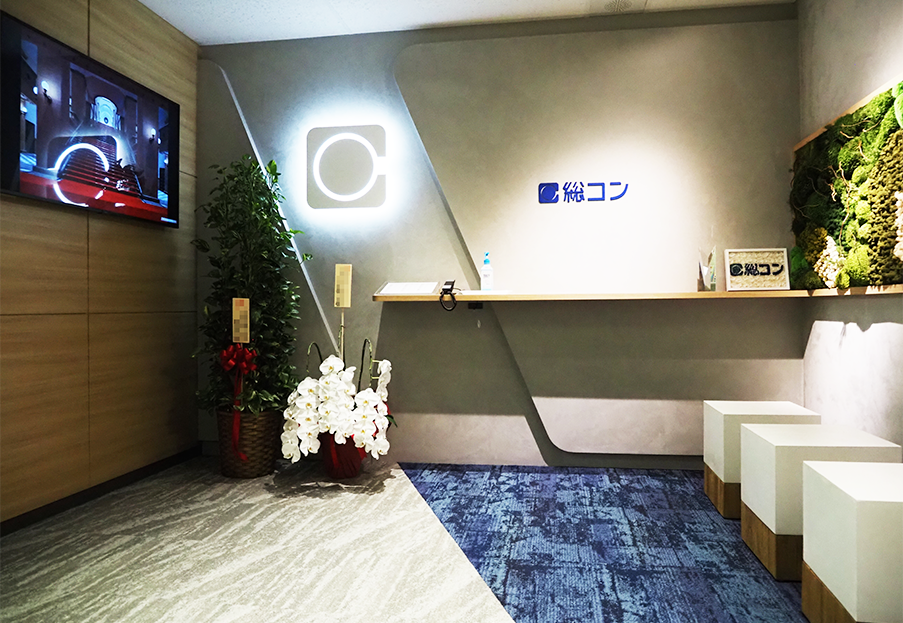 株式会社総合設備コンサルタント様は2024年の創立50周年に向け、経営資源である人材・執務環境・社内設備等への投資を強化しつつあり、その一環として今回本社オフィスを全面リニューアルし、社員が切磋琢磨し存分に力を発揮できる執務環境づくりを進めることとなりました。今回の本社オフィスリニューアルでは狭隘化解消・老朽化対応等の執務環境改善と会社イメージの刷新を主目的に7点のコンセプト①社員の知的生産性の向上②社員間のコミュニケーションの活性化③エントランスエリアの環境改善④オフィスの快適性確保⑤オフィスの安心・安全性、信頼性確保⑥ペーパーレス化への取組み⑦障がい者も働きやすい職場環境、を掲げリニューアル工事を行いました。